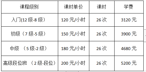 启蒙老师大多是一段到五段的水平,专业班将由六段或职业棋手上课。