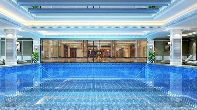 自带天幕恒温游泳池、
