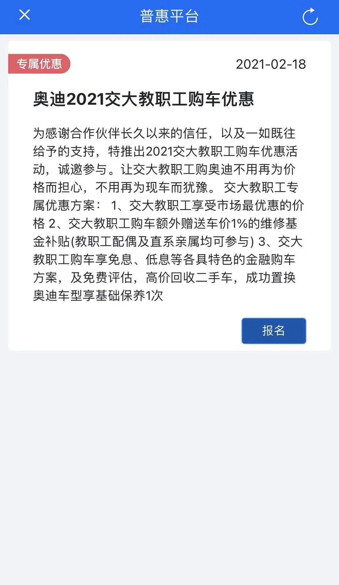 推出奥迪2021交大教职工购车优惠活动!