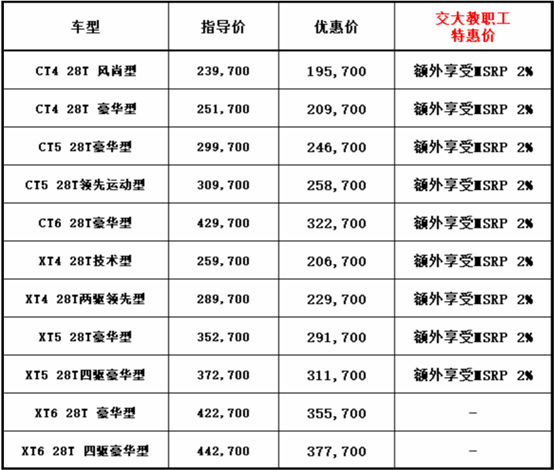 注:以上政策仅限上海交通大学教职工(凯迪拉克车主)享受。